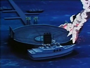 While Miho pouts in her room, Kit is busy KILLING EVERYONE. At first he just crashes a few speed boats into the stadium, but when that doesn't cancel his dad's beloved dance contest, he actually sets off bombs in the building. There's people running and screaming, bedlam everywhere. Presumably he's just killed thousands.