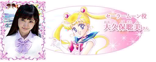 The original magical girl manga's creator Naoko Takeuchi personally auditioned actressses for the cast. 17-year-old Satomi Ōkubo (pictured right) will be the fifth actress to assume the role of the title magical girl. Yūga Yamato (pictured left), a former actress of male roles in the famed all-female Takarazuka troupe, will play the love interest Tuxedo Kamen (Tuxedo Mask). The full main cast includes: