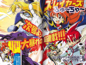 A Slayers spinoff manga, tentatively called Slayers Future, will launch in Kadokawa Shoten's Kerokero Ace magazine in its September issue (on sale on July 26). Comic scenario writer Yoshijirō Muramatsu and manga creator Shin Sasaki will be developing a story with Lina and the other characters from Hajime Kanzaka and Rui Araizumi's Slayers fantasy comedy light novels. However, according to the preview in the current issue (released on June 26), the characters will be placed in a technological world in the near future, when magic is only the stuff of fairy tales. Central Park Media released several of the different manga titles based on the Slayers novels in North America.