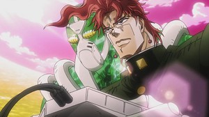 The episode does tip its hand at the end both by giving us a heartfelt Kakyoin flashback, and showing Terence become frustrated by Kakyoin's skill at the game. The Stardust Crusaders only defeat their opponents when the show has dragged them down to their lowest point, so the wave of hope that Hierophant Green's master is currently riding has to come crashing down soon. I can't blame Araki for wanting to spotlight his mad skillz, though. Next time, it will be Jotaro's turn to step up to the plate.