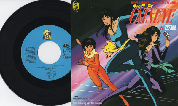 It's such a natural fit that even back before companies were actively trying to promote pop acts, the theme songs themselves became pop music, and would do decent business when sold at record stores. Even to this day, the theme songs to old anime from Tatsunoko shows, superhero themes, and sentai shows are some of the most popular selections at karaoke places all over Japan. And as the songs got poppier, they got more popular. Theme songs from classic anime like Dragonball Z ("Cha-La Head-Cha-La" by Hironobu Kageyama), Cat's Eye ("Cat's Eye" by Anri), and many others were big business throughout the 80s. When you bought an anime song on a vinyl 45, the paper sleeve would have the anime art on one side, and a glamorous shot of the singer on the other.