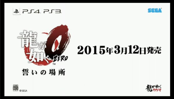 The official website for the Ryū ga Gotoku Zero: Chikai no Basho (Yakuza Zero: The Place of Oaths) prequel game announced on Tuesday that the game will debut in Japan on March 12, 2015.