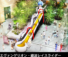 The official Evangelion website announced on Friday that an 18.5-meter (60-foot) long figure of the Neon Genesis Evangelion character Rei Ayanami will be built outside of the NTV Tower in the Shiodome area of Tokyo as part of the "Shiohaku Expo 2012" summer amusement event. The figure will feature a slide (pictured at right) that attendees can slide down during the event.