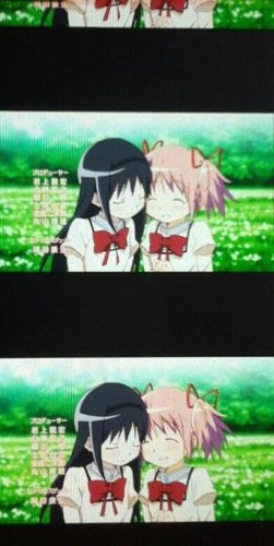 The auctioned strip features frames of characters Homura Akemi and Madoka Kaname cuddling in the opening sequence of Puella Magi Madoka Magica the Movie Part 1: Beginning.
