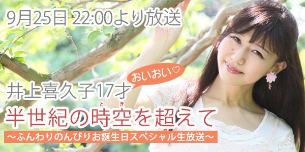 井上喜久子17才おいおい半世紀の時空(とき)を超えて〜ふんわりのんびりお誕生日スペシャル生放送〜 #nicoch2599200 #井上喜久子 http://t.co/oDsxw8WW8M