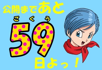 For the next 59 days, Bulma will be counting down the days until the movie's premiere with artwork, movie highlights, cast and staff comments, and contributions from other characters, including this post on #58, as translated by Kanzenshuu: