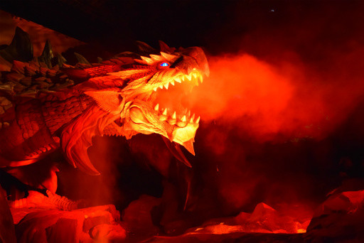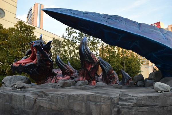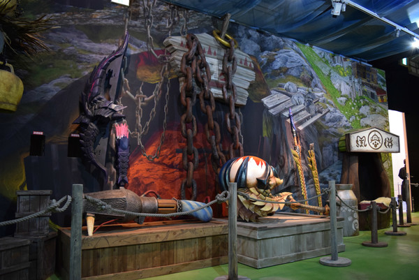 Monster Hunter the Real showcases two monsters, Rathalos and Zinogre. Visitors can experience their fiery blasts and electric attacks. There is also a life-size sculpture of Dinovaldo for visitors to take photos with and displays of Monster Hunter paraphernalia like weapons and tools.
