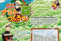 In celebration of the Naruto manga selling over 100 million books in Japan as of this past April, Weekly Shonen Jump publisher Shueisha and the PresentTree company have established a campaign to plant 7,610 trees on mountains in the Yamanashi prefecture to create "Naruto's Forest." The project will care for the forest for ten years until the trees can grow independently.
