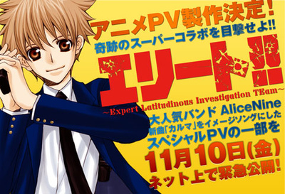The official blog of Kodansha's Monthly Young Magazine has announced on Friday that production on an anime promotional video for Mayu Shinjo's new Elite!! ~Expert Latitudinous Investigation TEam~ manga series has been green-lit. The music video will feature the song "Karma" from the popular band Alice Nine.