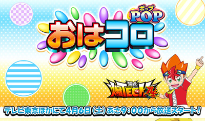 TV Tokyo revealed on Friday that the Baku Tech! Bakugan Gachi television anime series will premiere on TV Tokyo and other stations starting on April 6 at 9:00 a.m. The series will be a part of the new "Ohayō Colosseum POP" program that will run from 9:00 a.m. to 9:15 a.m. on Saturdays.