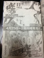 This year's seventh issue of Square Enix's Young Gangan magazine announced on Friday that the television anime for Saki's National Tournament arc will air next spring. The issue also confirmed that the 11th volume of Ritz Kobayashi's original manga and Aguri Igarashi's fifth Saki Achiga-hen episode of side-A manga volume will both ship on April 25, despite Kobayashi's hospitalization.