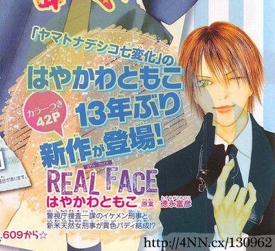 The Wallflower manga creator Tomoko Hayakawa is drawing her first new manga in Kodansha's Bessatsu Friend magazine in 13 years. Hayakawa will publish the one-shot "Real Face" in the November issue of the magazine on October 12. The 42-page manga with a color opening is based on an original story by Tomihiko Tokunaga (Akahori).
