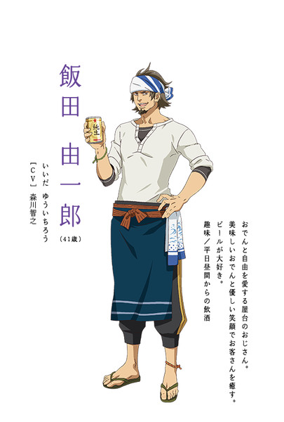 An old stall vendor who loves [the Japanese dish] oden and freedom. He comforts customers with delicious oden and his gentle smile. He loves beer.Interests: Drinking alcohol in the middle of the day on weekdays.