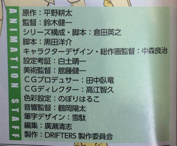 The October issue of Shonengahosha's Young King Ours magazine revealed the main staff on Saturday for the anime adaptation of Kouta Hirano's Drifters manga.