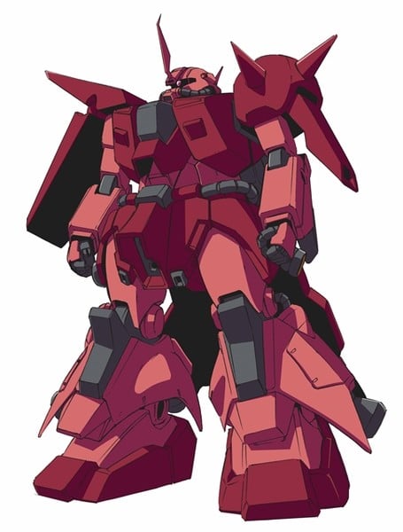 AMX-011S Zaku III-Kai, a refitted version of the AMX-011 Zaku III, which was developed in Axis. Painted red for unit commanders, and outfitted with better armor and improved maneuverability. When Danton ends up in trouble in Axis, he ends up piloting this unit.