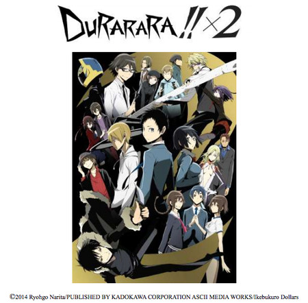 DURARARA!! X 2 is an anime adaptation based on the light novel series created by author Ryohgo Narita. Takahiro Omori will once again be directing alongside many members from the previous series. Studio shuka is responsible for the animation production and this will be its first major project. For more information on the English Simulcast of DURARARA!! X 2 please visit