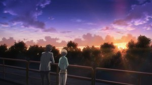 That light opening led into the episode's first major scene, where Moe lead Souhei up to the roof to take a second look at the helicopter landing area. Though Moe checked the roof's edge and muttered about the ease of sneaking off the building, her real motives here were clear because she was still in her bathing suit. Moe wanted Souhei to notice her as a woman, but as the sun rose in the distance, it was clear that their relationship was more familial than romantic. The slow rising dawn made for a lovely framing device as Moe recounted the strange ways Souhei tried to draw her out of her shell in the wake of her parents' death, making this one of the stronger scenes of the show so far. With both Moe and Souhei's personal context coming more into light, it's far easier now to connect with these self-conscious, standoffish characters on a human level.