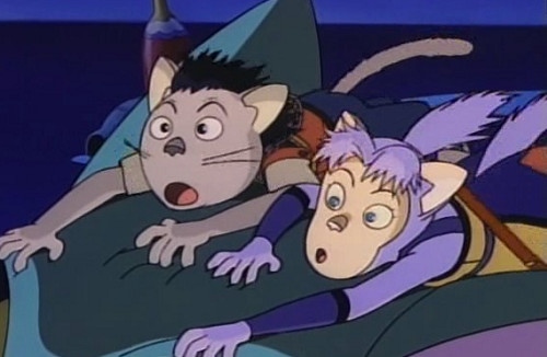 Takashi Nakamura is another underappreciated name in anime. Animation nerds will invoke Kōji Morimoto's name for his bold style, but Morimoto was following in the footsteps of Nakamura, who was his boss on the Tatsunoko cartoon Gold Lightan. Nakamura worked as a key animator on important 80s films like Harmagedon and Robot Carnival, and eventually got his own project: Catnapped. Catnapped is pretty great, an unabashedly weird family comedy about how we sometimes forget to treat our pets well, and what we'll do to win them back when they go astray. In this case, a kid named Yasuo (his bratty sister calls him Toriyasu) fails to pay attention to his pet dog Papadoll, who wanders off to the mysterious land of Banipal Witt. The two kids are soon drawn to this magical land by its feline inhabitants, who present them with a serious problem – their pet dog has turned into a monster, and they have to stop it somehow! Nakamura created the story and characters of Catnapped, but you can also see the fingerprints of horror scribe Chiaki J. Konaka all over this movie. It's an enjoyably strange film, one that kinda tries to evoke that Ghibli family movie feeling, but is too cheap and weird to pull it off.
