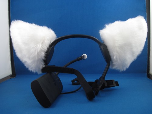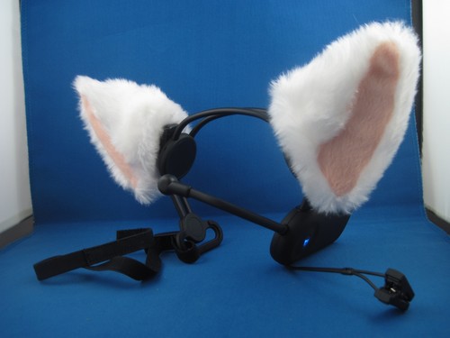 The “ears” themselves are simply fuzzy covers that slip over the headset. I think these cat ears are sort of ugly, as cosplay cat ears go, and maybe that's the idea: the company plans to sell extra covers separately, including licensed stuff. I want Chiyo's Dad ears or super robot horns, so someone get those done.