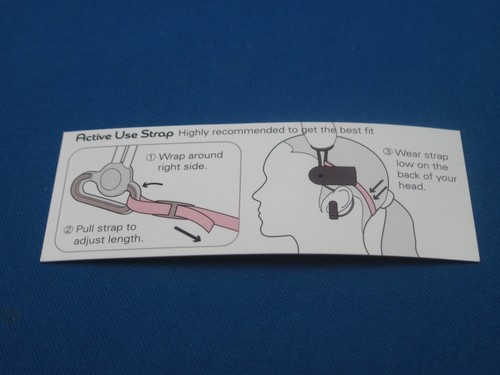 An included note “strongly recommends” that the attached strap be pulled around the back of your head to secure the headset. The fact is, this is not a strong recommendation but a necessity if you want this thing to actually fit well on your head. The size of the headset itself is not adjustable, and before finding this tiny card and using the strap, I thought the thing just wasn't made to stay on my big ol' American head. The elastic strap loops around to the other end of the headset and attaches to itself with some Velcro. Be careful you don't strap it on too tight.