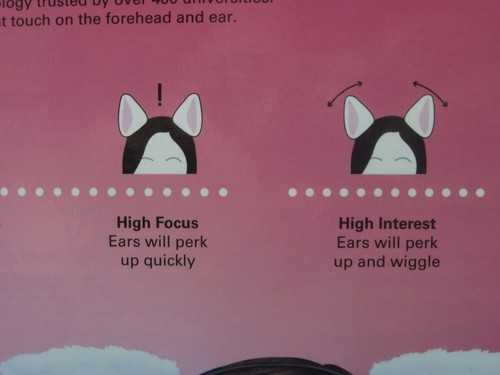 If you've been to a convention in the last year or so, you might have seen the necomimi (Japanese for “cat ears”, of course) ears going around. They tout themselves as “brainwave controlled cat ears”; that is, put on this headset and the motorized ears will actually react to your thoughts and emotions by moving around. This is quite a claim.