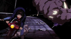 The "friends" happen to be the Killer Commandos, a team of battle bikers. Among their star players is Hiro, a young man with a serious chip on his shoulder. He's dating the ever-cheerful Maggie, and quietly seems to delight in rolling her eyes at her innocence. She's taking the destruction of her city quite hard. Hiro, meanwhile, is sullen as he blithely breaks martial law curfew after Io is occupied.