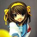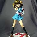 Haruhi Suzumiya from the series Melancholy of Haruhi Suzumiya, with a display stand and a few swappable parts, like an armband and a hand. Cobra Commander is not included, he's just there for scale again.