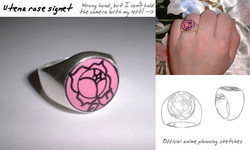 Another big tip is to search your local flea market for useful materials that can save you a ton of work. A cheap silver-coloured signet ring is perfect for an Utena duelist's ring - bash the signet part out with a screwdriver and replace with pink polymer clay, draw the design on with a black CD marker pen, and that's all you need. Glass blobs intended to decorate pot plants or floating candles make beautiful coloured "gems," and if you need particular shapes, then cheap teen jewelery shops are great for pink plastic hearts or "diamonds." Fabric scraps or curtain tassels from a haberdasher's can be converted into ribbon for a choker or decoration for a Chinese priest's prayer beads.