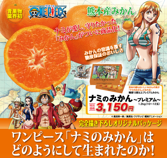 Nami's prized mikan oranges, as seen in Eiichiro Oda's One Piece manga and anime, will actually be sold in Japanese supermarkets and department stores in October. A farm from Japan's Kumamoto Prefecture is offering these official One Piece mikan. "Nami's Mikan ~Premium~" stand out from other mikan oranges with their sweetness — they have a sugar content of 12 percent or more.