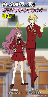 The festival will feature the original characters Anzu Nekota and Naomasa Gōshi (pictured at right). The event will be held on September 24 at the Ajinomoto Stadium in Tokyo, and it will host voice actors, live concerts, discussion panels, skits, anime dialogue recordings, and other stage shows.