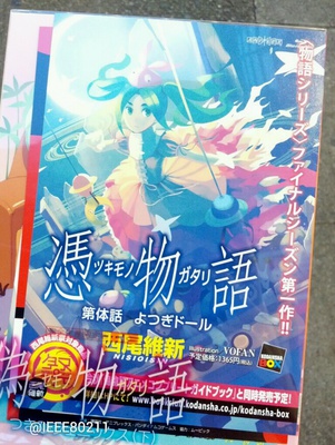 On Tuesday, the Japanese blogger IEEE802.11 posted an image of promotional material for Tsukimonogatari, the 13th novel in NisiOisin's Monogatari series and the first book in Monogatari's final set of volumes. According to the NisiOisin Matsuri website, the book is slated to ship later this month.