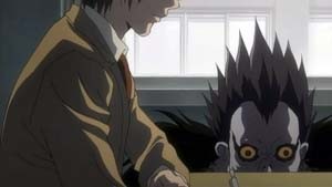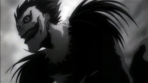 Death Note. In Japanese, the word for notebook is "nooto" (pronounced nor-toh) which is where the English title has derived the word "Note" from. As one may have now deduced, the title refers to a "death notebook" in which if a person's name is written, they will die. This notebook initially belonged to the realm of the Gods of Death, or Shinigami. All Shinigami possess one, in order to take human lives before their time to die in order to add the difference in years to their own lifespan. Thus, a Shinigami's existence relies heavily on the death of humans. However, one Shinigami- Ryuk is tired of his world. It is barren and desolate, with little to do, eat or see. So Ryuk obtains a second Death Note by tricking an elder and "accidentally" drops it into the human world. Out of boredom, Ryuk starts off one of the most memorable stories in anime. When the lucky Light Yagami finds the Death Note in his school, he thought it was some twisted prank. Ryuk had even written the rules of the Death Note inside in English- the most common language in the world today. Light, being a Japanese prodigy is fluent in English and sees the first rule of the Death Note- "The human whose name is written in this note shall die." Intrigued by it, Light sneaks the notebook into his bedroom and writes the name of a criminal who was being broadcasted live on television. The second rule of the Death Note was "This note will not take effect unless the writer has the subject's face in their mind when writing his/her name. Therefore, people sharing the same name will not be affected." The news program had displayed a photograph of the criminal on screen which allowed Light to know specifically who he was dealing with. The interesting part is when the rules begin to explain the causes of death: