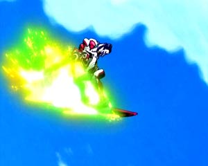 I see no point in causing any suspense here. I see no point in making you read this whole review just to find out if the first five episodes of Eureka 7 are any good. So I'm just going to proclaim the conclusion right here and now: if you are looking to start a collection of a new anime TV series, then it absolutely and unquestionably should be Eureka 7. Even if you don't want something with mecha in it, even if you don't want a teenage protagonist, even if you openly dislike anything futuristic, you should get Eureka 7 anyway. It excels at everything it does, it does a lot of different things, and if these early episodes are any indication, it may go on to be one of the greatest series to come out this decade. The narrative opening is familiar territory, it contains a bored fourteen-year-old boy who is the son of a hero and has dreams of greatness, a mysterious girl, and a whole lot of cool looking mecha that are yet to be explained. The boy, Renton, is openly dissatisfied with his life and gets his only thrill whenever he ‘lifts’, the sport of flying through the air on a skyboard. He attends a ‘sucky’ school in a ‘sucky’ town, and although his father is noted as having saved the world people are frequently questioning the truth of that belief. The show tried a little too hard to question this, as it is quite eager to establish the impact that Renton's father's legacy has had on him. When it comes down to it, this is really just a premise for what's to come – seeds being sewn that are yet to sprout and grow. Everything that happens, from Renton learning to believe in air currents to his meeting with (and becoming smitten by) the slightly odd Eureka. Building up to Renton running away to join a ship and crew he has always dreamed about, and this is all despite his Grandfather's well-meaning wishes. The end result is swiftly paced without ever feeling rushed. The show moves comfortably, starting off with a punchy rhythm and occasionally moving through more orchestrated or quiet moments, never settling into the one milieu but always directed with aptitude and confidence. The end result is a story opening that is more enjoyable that the whole sum of its immediate parts, and small techniques like having Renton give voice-over narration as if he were writing to his missing older sister make for nice touches that highlight the use of familiar convention in a way that seems misleadingly fresh. By the general standards of a television series Eureka 7 looks absolutely amazing. It's still a long way from the theatrical standard of something like Innocence, but its ability to keep things hand-drawn while still appearing high-tech gives it a slight upper hand. The colour palate in Eureka 7 is an open embracement of everything digital, and the image on the DVD is clear and vibrant, which is only made better by the actual colour consistency choices made throughout the show. Most importantly is that even the mecha units (known as LFO's) are hand-drawn. They move with a dynamic sense of energy that 3D graphics are still some way from capturing. And there's no need to comment on how well the LFOs blend in with the rest of the 2D artwork by sheer virtue of them being an actual part of it. The added sweetener is that Shōji Kawamori has done an incredible job in designing them, further helping him to retain his reputation as a master of the field, and much like the human characters, these lithe robots surf the sky. This may seem ridiculous, but it's also an open embracement and extension of something that was always ridiculous to begin with, and this lack of restraint where restraint need not be shown allows the show energy without need for too much explanation. Finally, as if having excellent mecha wasn't enough, character designs are also are second to none. The overall visual package simply couldn't be any better for what it is, and what it is is more than just a little bit special. Eureka 7 is a looking to be a very rare thing. It successfully opens with immediate impact but yet it never feels rushed, and the way it makes generic conventions seem new and fresh will probably lend it both mass appeal and critical respect as it continues to unfold. The DVD is no slouch either, containing a healthy five episodes and coming with a simple (reversible) cover that should allow for consistent design in upcoming volumes. The disc itself also features a interview with a very bubbly Yuko Sanpai and Kaori Nazuka (Renton and Eureka, respectively) that certainly benefits from allowing them to bounce the conversation off each other. They also provide an audio commentary for the first episode that is generally more fun than informative, despite a couple of quick observations. The dub's reasonable too – Renton's grandfather sounds a bit forced, and sometimes it moves too quickly to sound like natural English, but it's still a notch above the norm. Dub or sub, this is an excellent show that could very easily continue to get better. It has few pretensions tying it to physical believability, and it's characters and general plotting will probably benefit from this in the long run. That such a loving production was originally broadcast in an early morning timeslot is almost a crime against humanity, and you owe it to yourselves to help rectify that by watching it. |