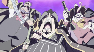 Sadly, most of this episode consists of a trio of rocket launchers flying through the air in slow motion as Capone and his crew tear it up. This episode is incredibly flat from a pacing and storyboarding point of view, and that build in tension over the rocket launchers just makes the outcome that much more obvious. At the last second, in the midst of her crying and reminiscing, Big Mom's Conquerer's Haki blows up all three rockets in mid-air, and our heroes are completely boned. It also doesn't help that the Haki just feels like a scream on top of a scream, and nothing about Big Mom's physical position has changed in about three episodes. The part of the escape plan that does work cinematically is when Caesar swoops in with one of Brulee's mirrors, but since Big Mom is still screaming, the mirror shatters at the worst possible time and now the Straw Hats and Firetanks are forced to fight. The comedic timing on this moment is fantastic.