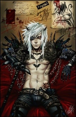 Vusc: To be honest, visual-kei is something like a childhood influence instead of what I'm currently a fan of. However, it still fascinates me how surrealistic their style is in fashion and music. I guess I have a fetish with textures (yet again?), but visual-kei clothing uses all sorts of textured materials that gives it a unique look: rags, leathers, laces, metals, ruffles and more. I actually line after I color, so I have more flexibility to add new details during my refining process. The lines are there to merely define and clarify.