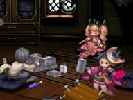 For most part, the game itself has very well done sprite work for a PS2 game, the anime style artwork that accompanies the game is beautiful, and you can't help but wonder just exactly how they were inspired. The game mixes three dimensional as well as your standard two dimensional backgrounds with the detailed sprite work, with anime cutscenes for various actions taken by you in game. Even though some of them are short, they're quite a marvel to watch.