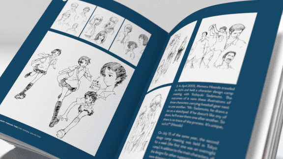 Be sure to check out the initial sketches of the characters and movie posters, which demonstrate the progress of the film's conception. Many of these sketches are from famous character designer Yoshiyuki Sadamoto (of Evangelion fame)! The book also includes gorgeous background art of key locations in the film's lovingly-rendered town.