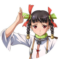 The elder sister, Tarnyang, wields a holy sword. She's bright and strong-willed. Her younger sister can use the mysterious power similar to magic, Fang Shi, but she's usually spacing out and an extreme weakling, so she's not much use in battle. She also speaks few words and only talks by whispering in her sister's hear. Tarnyang is always complaining to Sainyang every day, but the sisters share a strong bond. They specialize in “Sou-Ryuu-Jin” style of combination attacks combing the elder sister's fighting skill and the younger sister's Fang Shi. “…I want to see it soon.” |