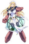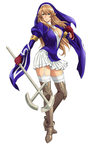 Though awkward and clumsy at times, she has the charisma to draw people to her, and her comrades can't leave her alone. She was originally a member of the Kreuz Border Knights, a group heralded as the strongest on the continent, and daughter of the border land's Earl. For some reason she was raised as a boy in the Earldom. She is capable of calling forth her horse “Ambrosius” from the underworld at will, and specializes in horseback combat. “My Sisters, I swear upon this sword! We shall surpass our limits!” |