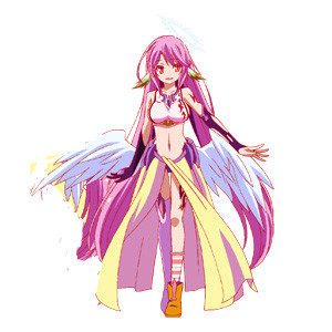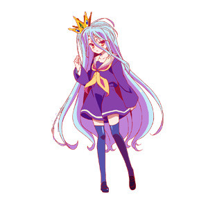 Shiro VA: Ai Kayano A truant, hikkikomori, deadbeat game girl. The other-half member of “__”, and Sora's little sister. She's a beautiful girl with red eyes and pure white hair. She's a genius who learned to speak in just one year after birth, mastered multiple languages and advanced mathmatics by age 3, and is capable of calculating future events to a degree that's almost clairvoyant. “Nii.….., Omegally, Good Job.” |