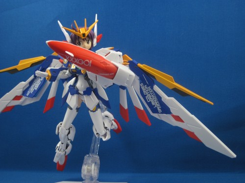 Her name is Yukina Schneelein, which is sort of a Gundam 00-style name rather than Wing, don't you think? Maybe there wasn't a number moe enough to name her after. The bare figure heavily resembles a Figma and is honestly pretty dull. The paint's muddy, the articulation is stiff and awkward, the sculpt is lousy, and of course this is a generic non-character. But we're not here so much for the figure under the armor, are we? Maybe things get better!