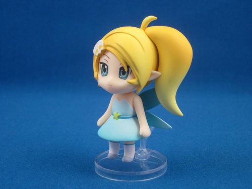Action features, you're asking me? Uh. Their arms kinda wobble around, huh? How about that. I mean, you can move their arms up and you can move 'em down. There's basically no limit to what you can do with these figures, provided you're into high fives, low fives, whatever. The fairies lack discernible fingers, so maybe they're not fives at all.