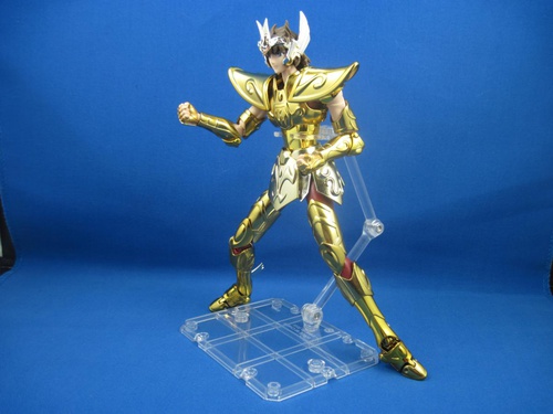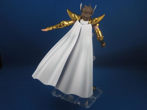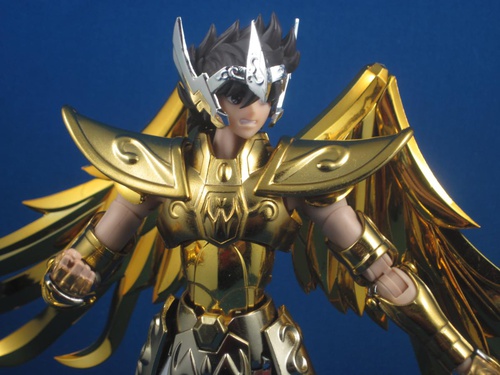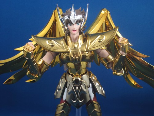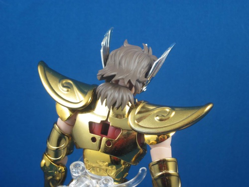 There's even more, though! That's right, golden wings. You like it. Aiolos knows you like it. (Note that with the wings this figure is officially way too big for my photo setup. I don't even know what's going to happen when Mazinger-- uh nothing) Obviously, for weight reasons, these wings are all plastic. They move a tiny bit, but don't expect much. These were the only really finicky part of the figure, and really had trouble staying on the back no matter how careful I was in securing them. You're probably going to want to display him this way, so be careful.