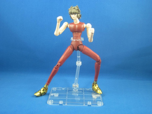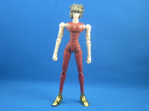 Let's take Aiolos out, then. Also bare. Just like the last time we did this, it's impossible not to notice how weird-looking the body is, like the male love interest in a shoujo manga. This is basically in keeping with the art of original author Masami Kurumada, and is always strange to see replicated so faithfully in 3D. The core figure looks just like a doll body, and it serves the same basic purpose.