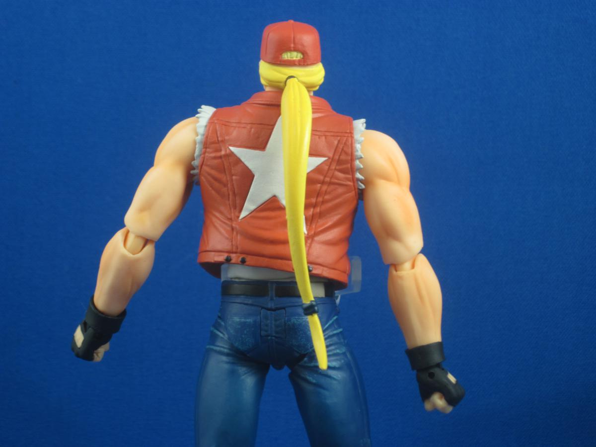 This is a differently branded line from Figuarts, but the basic figure is comparable. The rugged Terry's classic outfit looks nicely worn with weathering around the edges, the “Fatal Fury” on his hat is clean.