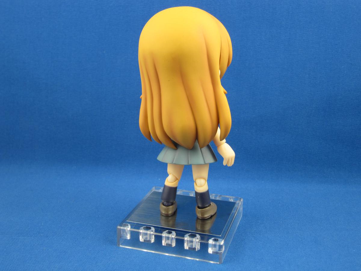 The difference, as you can probably see, is in proportion. The Nendoroid aesthetic is squatty to an extreme, with arms and legs about the same size as the tip of your pinky. Even the chibi-arts figures had a slightly more elongated body. The Cu-Poche is a tiny bit taller than a Nendoroid, with less radical proportions: the head's a little bit smaller, and in exchange you get a full, posable body.