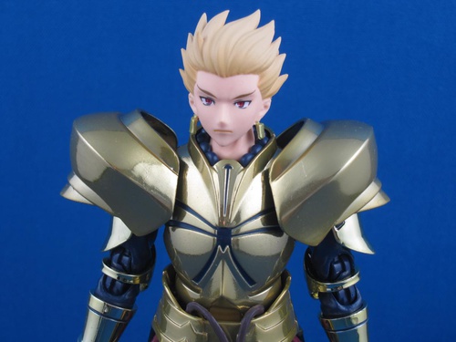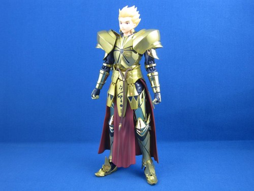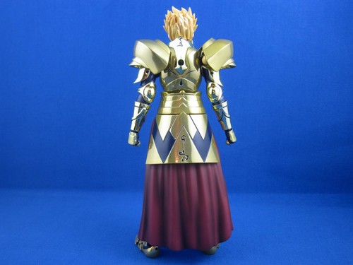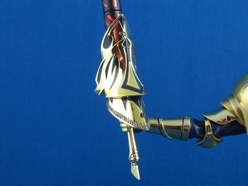 A big selling point of the Fate Chogokins, and the reason for their high price, is that the characters' armor isn't just some shiny plated or painted plastic. Shoulders, chest, waist, and greaves are all metal. You'll feel it when you pick the figure up. That gold is gleamin', and it's heavy too.