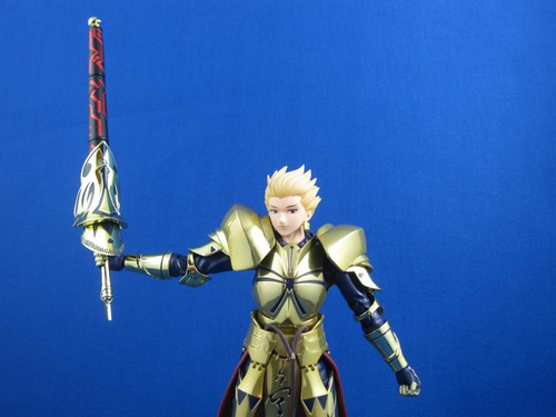 Articulation is top-class as expected: as I said before about Saber, these figures feel a lot like the Myth Cloth Saint Seiya line, sans the removable armor. The shoulder plates swivel around, the armor at the waist flaps outward. The plastic “cape” is completely inflexible, however, and posing the legs requires that you work around it. He definitely won't be sitting down.