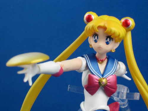 Note that due to the extreme light weight of the figure, the lack of a center of gravity, the tiny feet, and the big hair, it is very difficult to get Usagi to stand on her own in even the most mundane of poses. Once you do, it is pretty much inevitable that she will fall over.