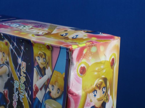 Anyway, there's finally a Sailor Moon action figure of proper quality. As you can see, our review sample got pretty badly banged up in shipping (this is why we use lots of padding, readers!), but otherwise the box is very nice, all rainbows and sparkles. “I'll punish you in the name of the moon!” is on the back, because of course it is.